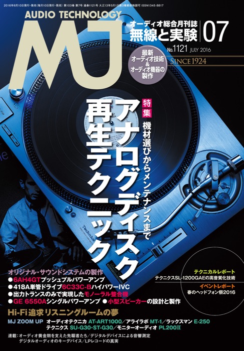 特集は「アナログディスク再生テクニック」として、ますます盛り上がりを見せているアナログプレーヤーの最新機種紹介に加え、アナログ再生の基礎知識、MJ執筆者の再生システム紹介などの解説記事をお送りします。製作記事は佐藤進氏の6AH4GTプッシュプルパワーアンプ、佐久間駿氏のモノーラル整合機、金田明彦氏の6C33C-BハイパワーIVCなど豊富な内容です。